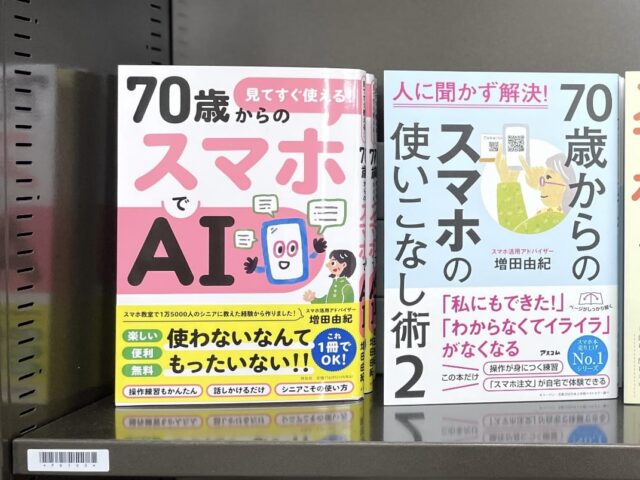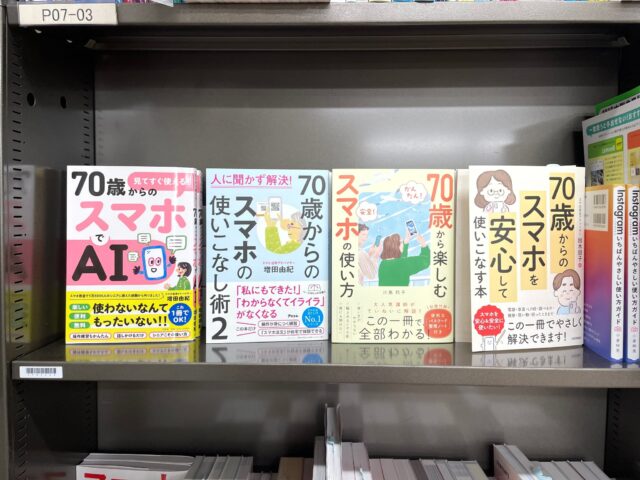 本屋さんの一角に、シニア向けスマホの本のコーナーができている場合もあります。