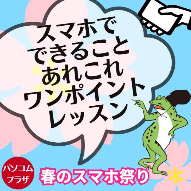 シニア世代向けに、スマホのレッスンも数多くやっている私の教室「パソコムプラザ」の公開イベントです。ぜひお気軽に遊びにきてください。