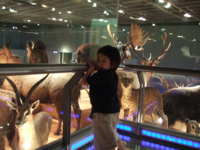 男の子は恐竜が好きですね、恐竜を何度も見に行ったなぁ。私も好き。