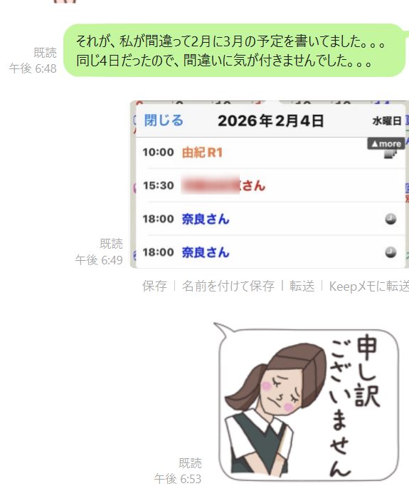 スマホのカレンダーは便利ですが、「入力」そのものを間違えると、そのまま信じてしまうという怖さもあるんだな、と思いました。