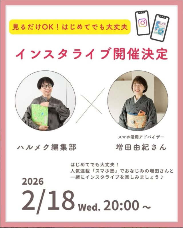 2月18日(水)の20時から、ハルメク編集部さんと一緒に、インスタライブを行います。