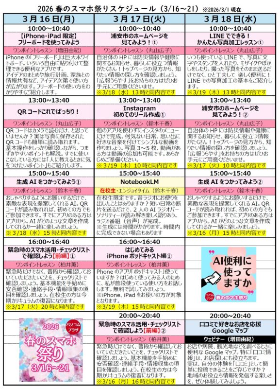 来週から、教室では「2026春のスマホ祭り」が始まります。