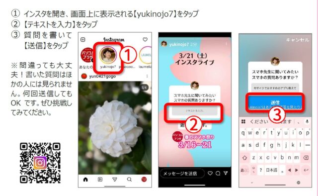期間中、この「ストーリーズ」の「質問」機能をつかって、皆さまからの「スマホに関する、先生に聞いてみたい質問」を集めている、というわけです。