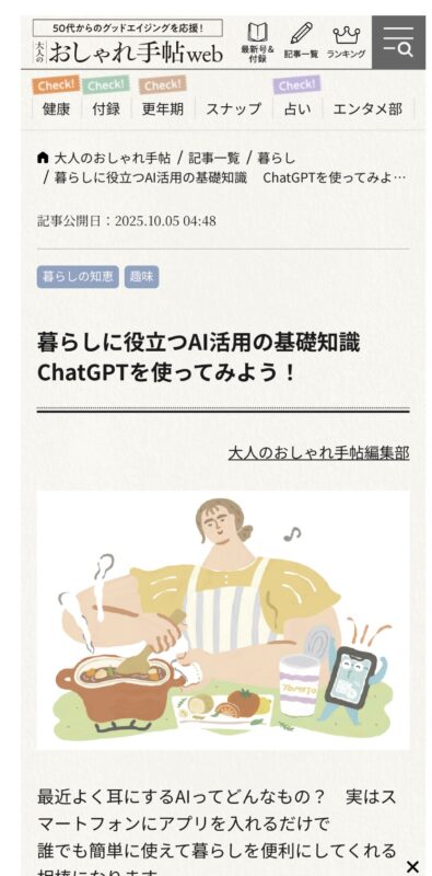 宝島社の「大人のおしゃれ手帖」の記事監修をしました。