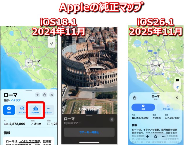 Appleの純正マップから、Flyoverはなくなっちゃったのかな。