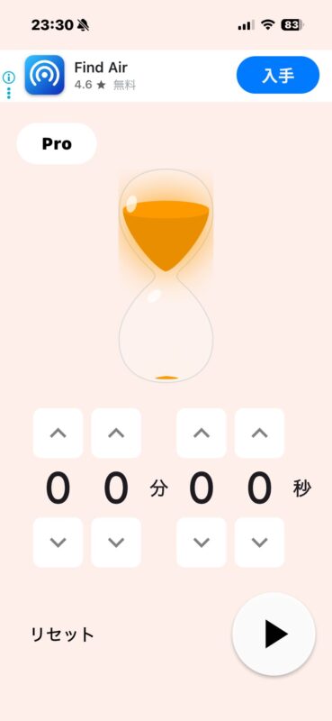 実物の砂時計でなかなか気に入るものに巡り合えなかったのですが、アプリで解決しました。砂時計アプリです。