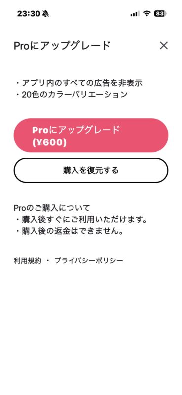これも結局有料版を買いました。色が選べるのと、広告が外せる、という理由からです。