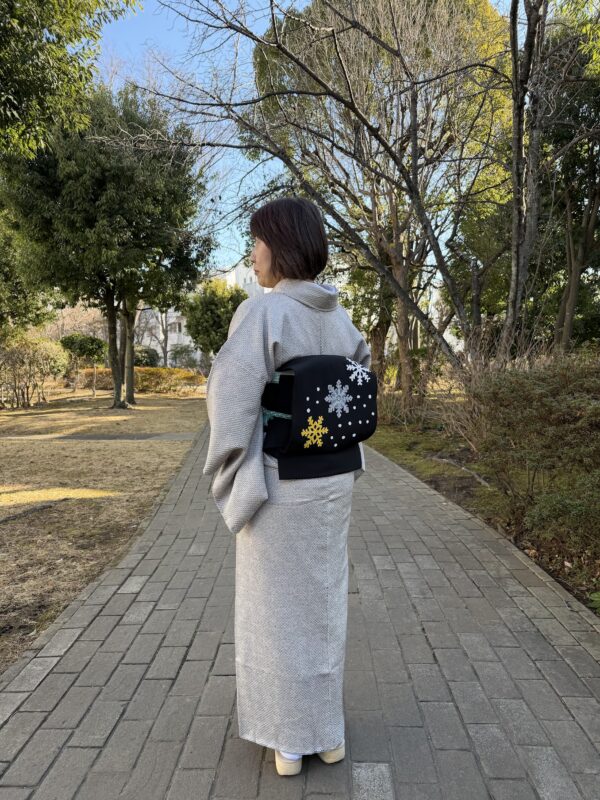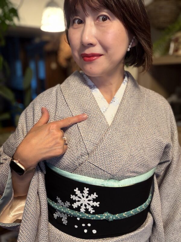 それから、雪の結晶が刺繍された半襟を初めてつけてみました。