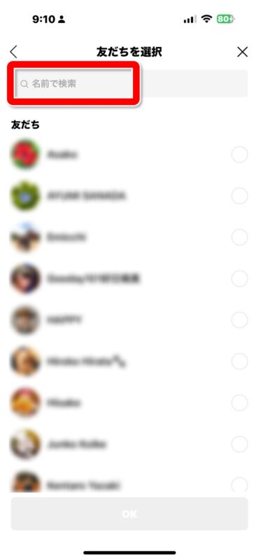 友だちが多い方は、キーワードで検索してもよいです。