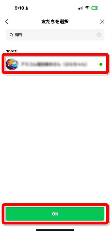 LINEスタンプを送りたい友だちをタップして、【OK】をタップ。