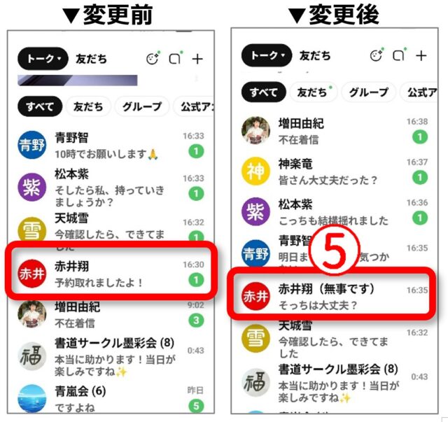 LINEの友だちに、トークを開かずに、トーク一覧を確かめてもらってもいいですね。
