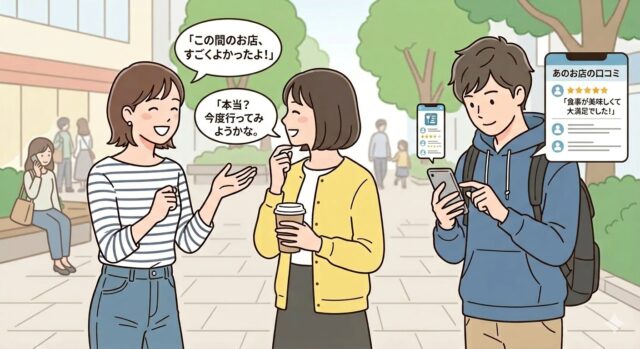SNS時代になっても、個人の実体験に基づく評判は、「クチコミ」と呼ばれ、お店選びの大きな支えになっています
