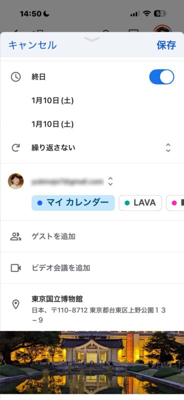 場所が決まっている場合、場所の欄に情報を入れておけば・・・