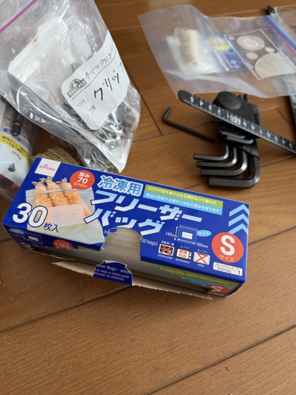 これですよ、これ。ジッパー付きバッグの「小」が大活躍です。