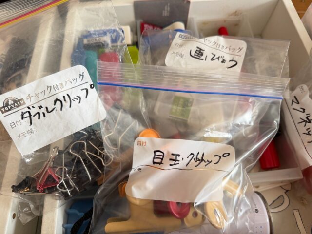 ホチキスや消しゴムは、袋に入れなくても、まあわかるでしょう。