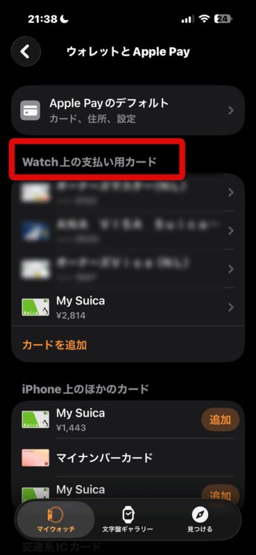 - Apple Watchに入っているのは、Apple Watch用のSuica。
