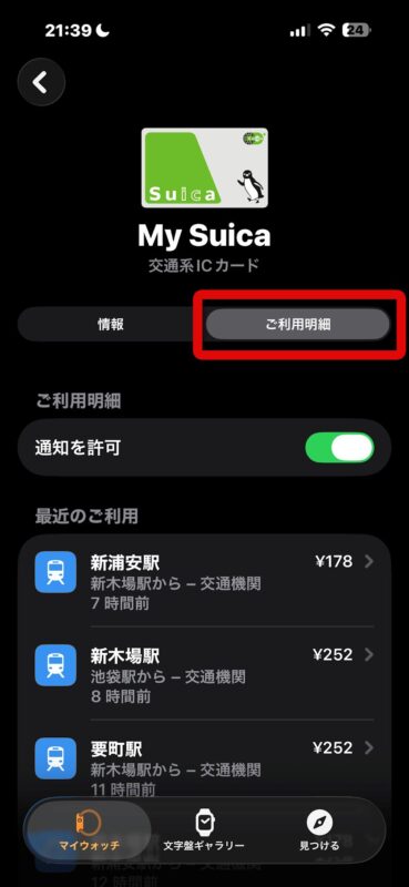 もし、特に設定など変えていないのに、Suicaが使えなかったら、Apple Watchに入れたSuicaでも、iPhoneに入れたSuicaでも、一度利用状況を確認してみるといいですね。