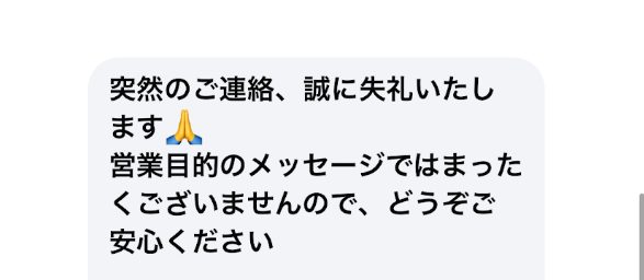 普通の人が、初対面のメッセージで「営業ではありませんので安心してください」