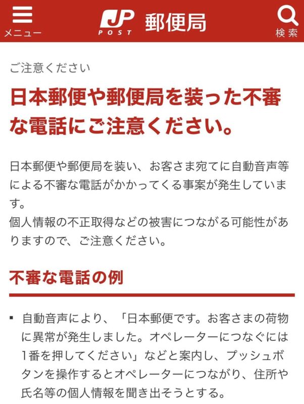 「本日よりお客様の郵便物の配送サービスが、今後利用できなくなります」