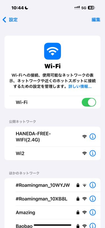 こちら羽田空港のWi-Fi「HANEDA-FREE-WIFI」と書いてありますね。空港のように多くの人が出入りする場所では、Wi-Fiさえつかめば、いちいちパスワードなど入れる必要はありません。