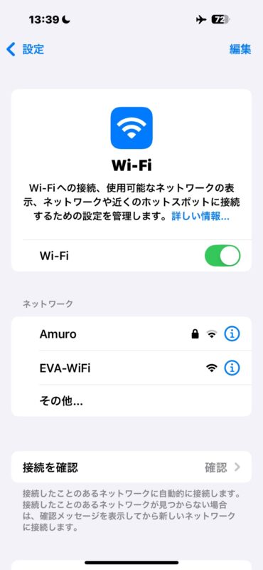 飛行機の中でもWI-Fiが使えます。「EVE-WiFi」と書いてありますね。