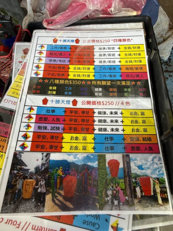 ランタンは願い事を書くのに色が決まっているらしく、色のセットで料金が決まってるみたいです。