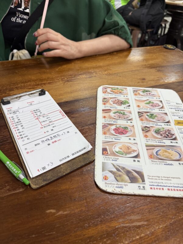 壁に書いてある値段が今の価格なのか、よくわからないのですが、オーダー表に注文を書き入れていきます。日本語メニューも用意されていました。