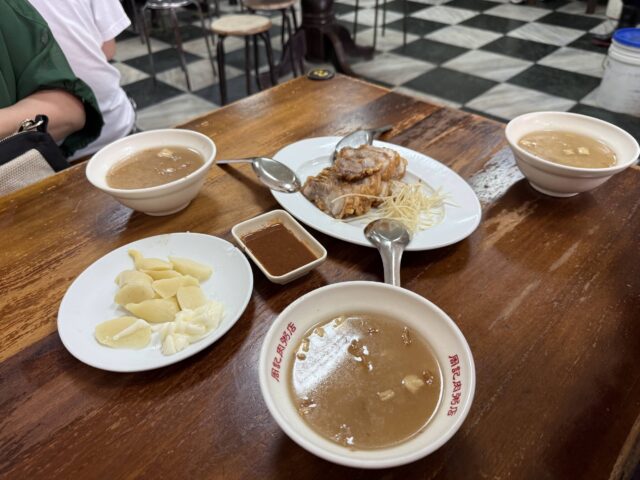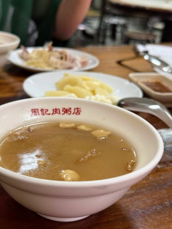 市場近くに、ガイドブックに載っている有名なお粥やがあるとのことで、スマホ片手にぶらぶら歩いていたところ、期せずして「あれ、ここじゃない?!」とお店が目の前に現れました。ちょうどお店の近くを歩いていたみたいです。
