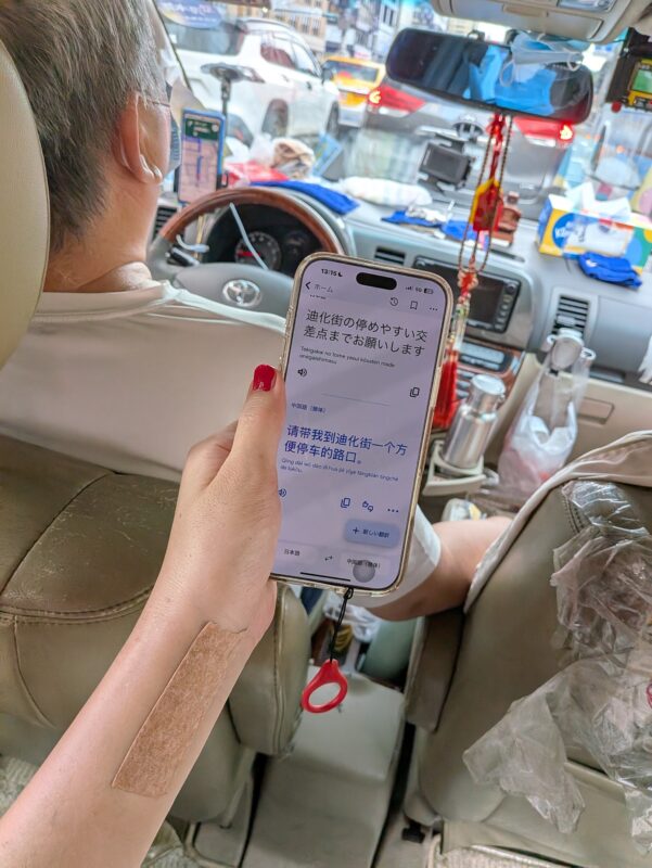 台湾ではどこへ行くのもタクシーを使いました。タクシーの運転手さんもスマホを上手に使って翻訳アプリを活用しておられました。
