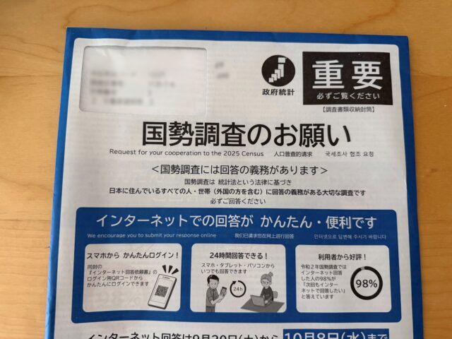 「かんたん・便利なインターネットでのご回答をお願いします」という用紙も入っています。