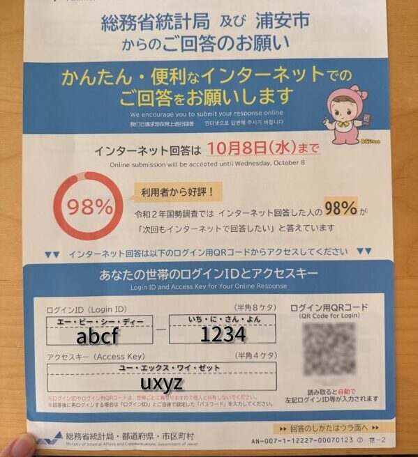こちらの用紙には「あなたの世帯のログインIDとアクセスキー」が記載されています。