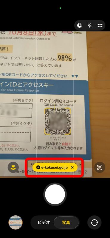 用紙に記載されているQRコードを、スマホで読み取ります。