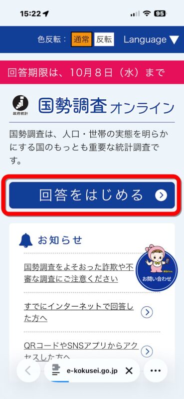 設問が全部で16問です。画面の指示に従って回答していきますよ。