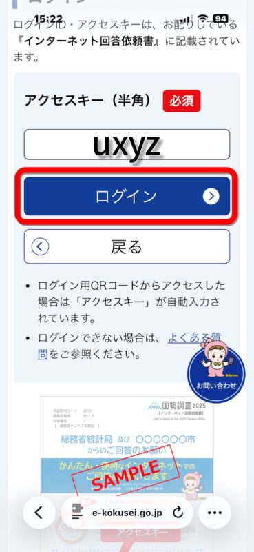 次にアクセスキーを入力するのですが、ここもすでに用紙に記載されたアクセスキーが入力された状態で表示されます。用紙を見ながらポチポチ入力しなくて済むのは楽ですね。