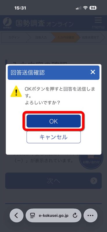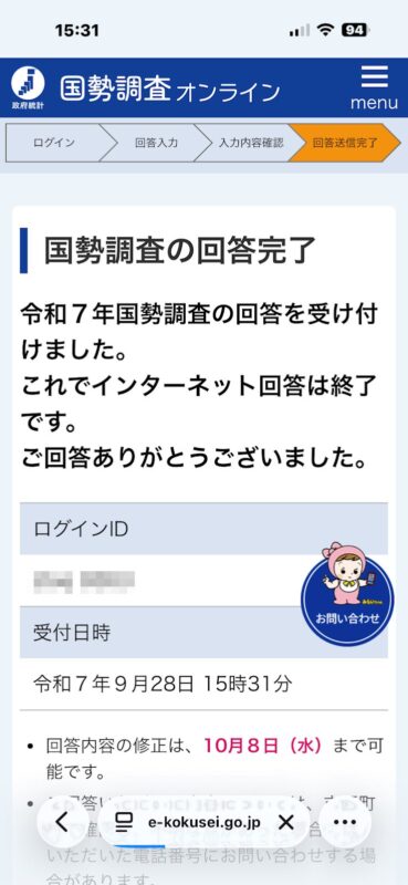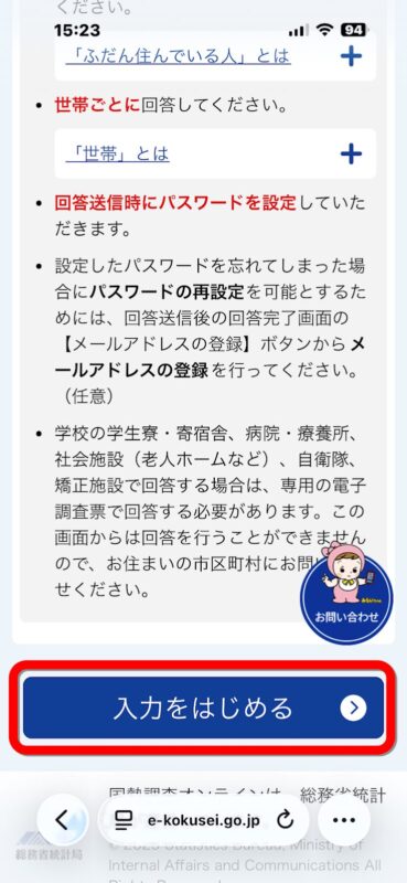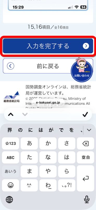 全部で16問の設問に回答し、最後に【入力を完了する】をタップ。