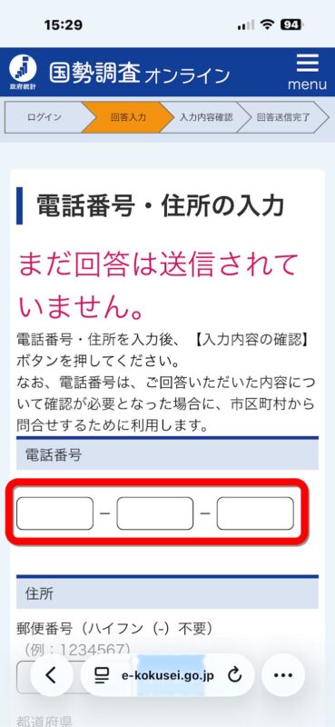 電話番号を入れる欄が表示されます。問い合わせが必要になった時に利用されるそうです。