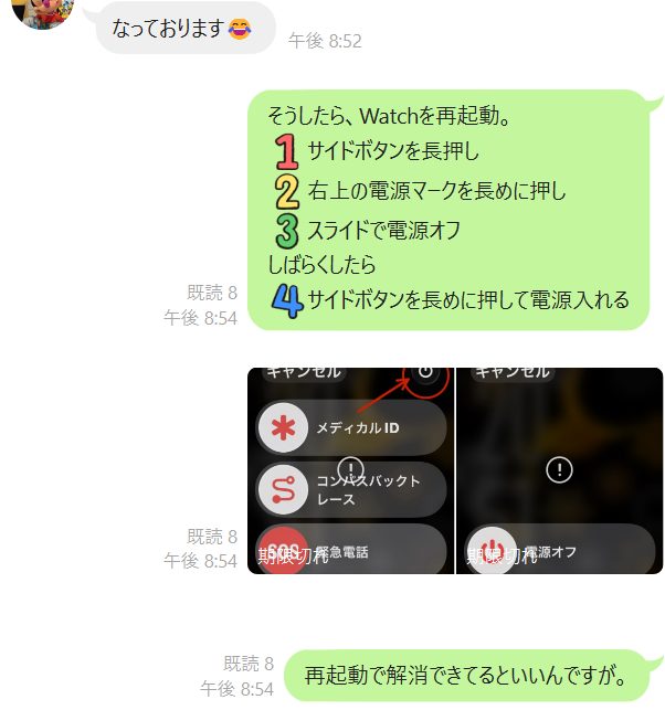 Apple Watchの連絡先に不具合があったので、再起動してみてください、とお話しした時のことです。